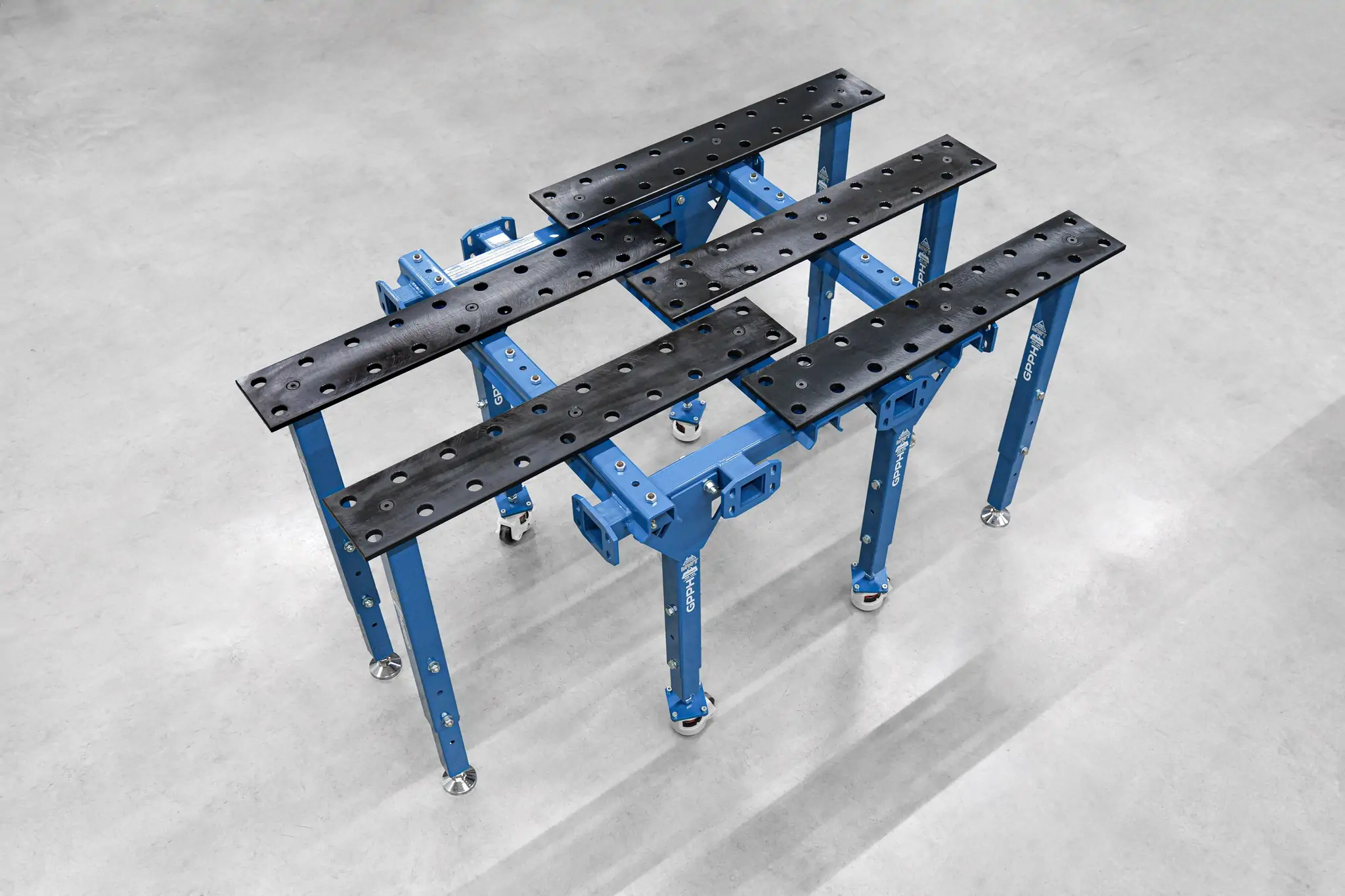 Одинарный выдвижной сварочный стол GPPH MWT идеально подходит для мастерских с ограниченной рабочей площадью и таких, которые работают как с мелкими деталями, так и с крупными конструкциями. Состоит из центральной рамы и выдвижных секций, что позволяет легко увеличить или уменьшить рабочую поверхность в зависимости от размера заготовки. Толщина столешницы 15 мм и допуск плоскостности ±0,5 мм обеспечивают ровное и стабильное основание для обрабатываемых деталей. На выбор предлагается 2 материала столешницы: углеродистая сталь S355J2+N или обработанная инструментальная сталь (азотирование+окисление). Стол представлен в 3 вариантах типоразмеров.