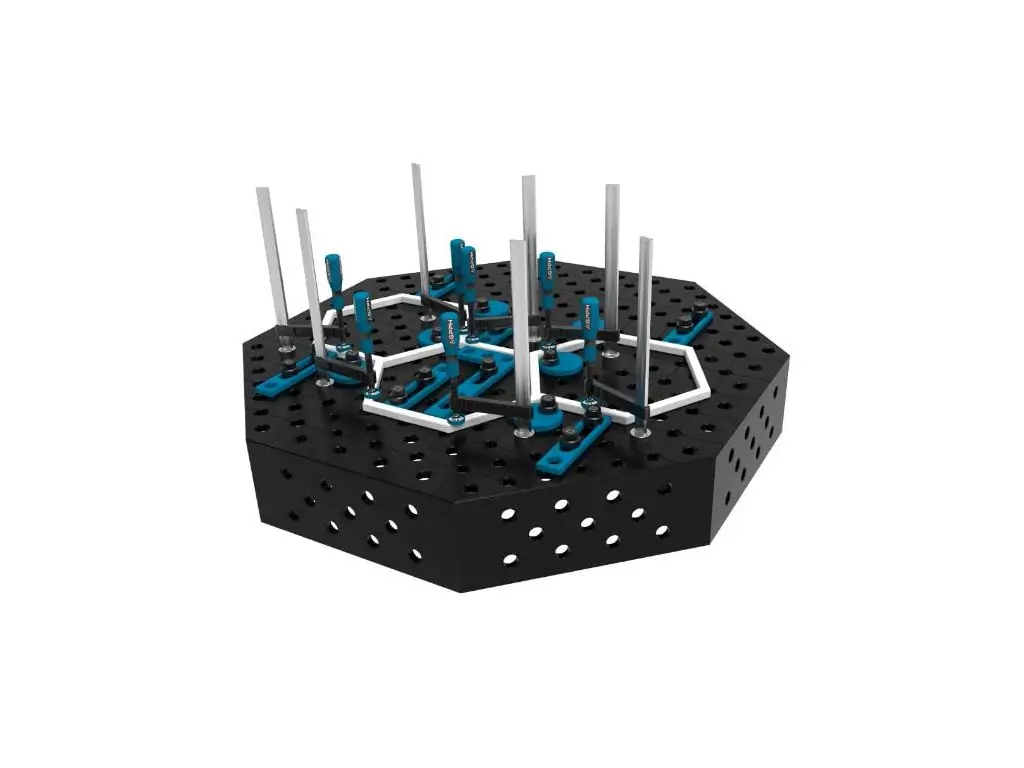 Восьмиугольный сварочный стол GPPH OCT PRO предназначен для роботизированной сварки и имеет уникальную октагональную форму, которая идеально подходит для автоматизированных сварочных систем и позволяет максимально эффективно организовать рабочую зону. Представлен в 5 вариантах типоразмеров и в сериях PRO, PRO INOX, PLUS, PLUS INOX. Материал изготовления - углеродистая сталь S355J2+N или нержавеющая сталь марки 1.4301.