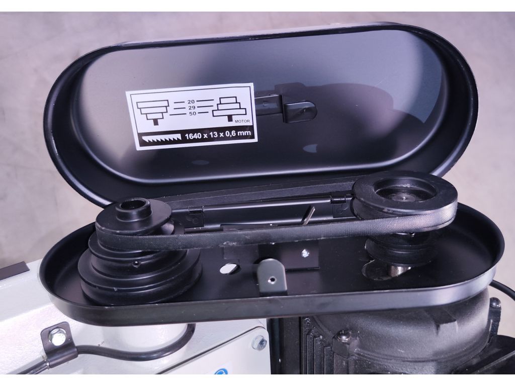 Стрічкова пила MAST Metalltechnik M-BS115-1 призначена для різання металевих труб з максимальним діаметром 110 мм і профілів розміром до 150х110 мм. Також може встановлюватися вертикально для різання листів. Оснащена двигуном потужністю 370 Вт, що працює від напруги 230 В. Обертовий рух здійснюється за допомогою ремінної передачі.