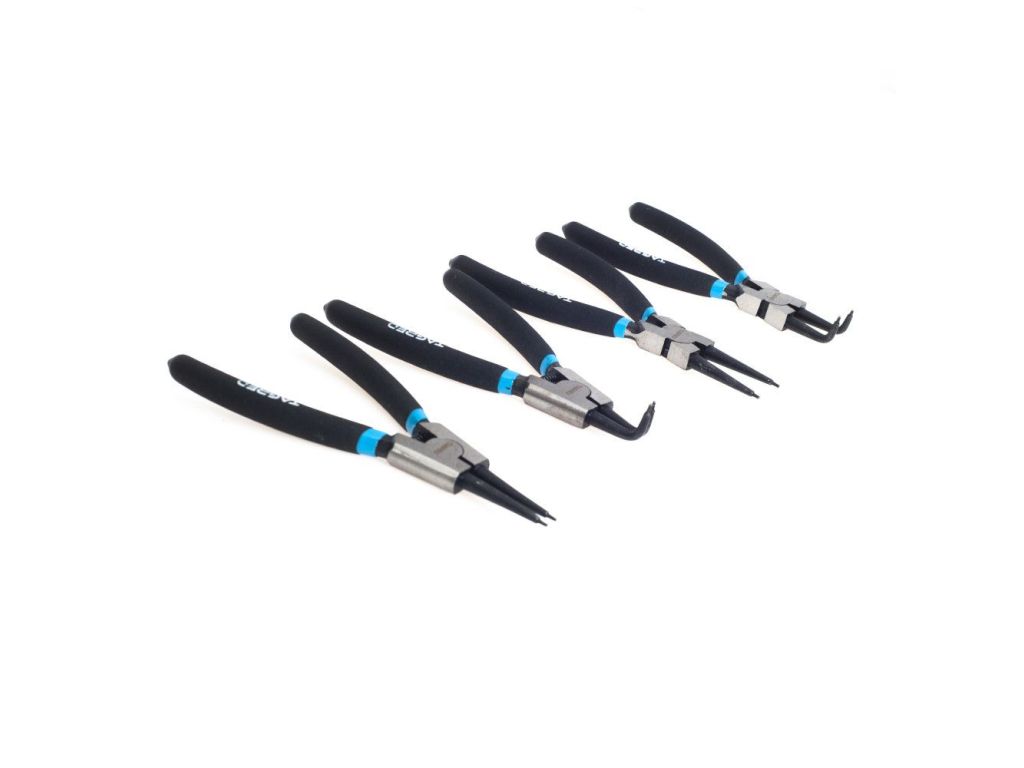Набір для зняття стопорних кілець, 4 шт TAGRED TA1038 - виготовлені з міцної та стійкої хром-ванадієвої сталі і мають ручки з гумовим покриттям. Це ідеальний інструмент для монтажу та демонтажу пружинних кілець. Плоскогубці із зігнутими та прямими кінчиками та 2 види фіксаторів: внутрішні та зовнішні.