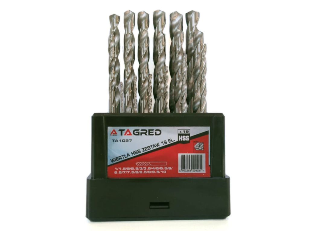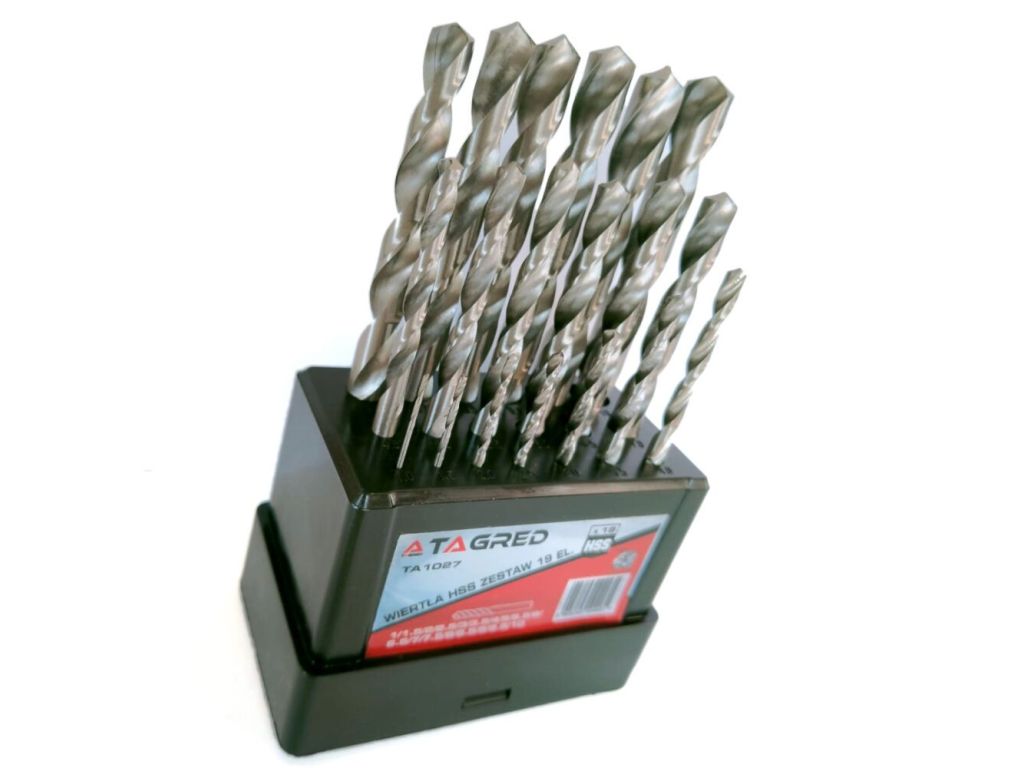 Набір свердл по металу TAGRED TA1027, 19 шт - виготовлені з найкращої швидкоріжучої сталі HSS з циліндричним хвостом та посиленою ріжучою кромкою. У комплекті підставка.