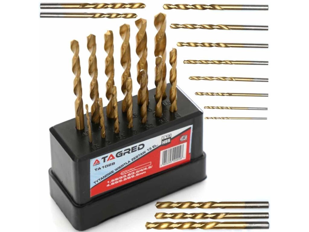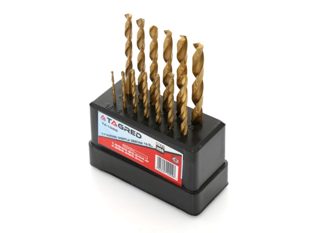 Набір свердл по металу TAGRED TA1028, 13 шт - зі швидкоріжучої сталі HSS та покриттям з нітриду титану, виготовлені повністю шляхом шліфування, гарантують високу точність і прямолінійність отворів. Підвищена еластичність і висока стійкість до стирання та скручування. Дозволяє високоточне свердління на високих швидкостях. Відповідний кут наконечника забезпечує агресивне різання практично в будь-якому матеріалі. Свердла призначені для використання в майстернях, для обробки легованих і вуглецевих сталей підвищеної твердості, чавуну, залізних агломератів, кольорових металів і загартованих пластмас. Кут при вершині 130°, напрямок різання за годинниковою стрілкою.