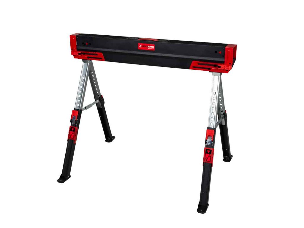 Для надійної фіксації стільниці чи обладнання естакада оснащена кронштейнами з регулюванням по ширині від 0 до 90 мм зліва і справа. Регулювання по висоті можливе на 9 рівнів у діапазоні 630-820 мм. Міцна, стійка до деформацій конструкція і стійкі ніжки забезпечують надійну опору на будь-якій поверхні. Ніжки можна повністю скласти. У складеному вигляді естакада надзвичайно компактна, що, у поєднанні з висувною ручкою, гарантує легке транспортування і зручне зберігання. Підставка під верстат естакада Holzmann AB1085FLEX доступна для замовлення на сайті офіційного постачальника виробника в Україні KMA.UA.