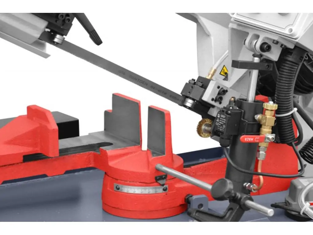 Безпека понад – усе! Запобіжні пристрої в стрічкових пилах для металу є важливою частиною системи безпеки та призначені для захисту оператора та самого обладнання від небезпек та непередбачених ситуацій. Система автоматичного вимикання після закінчення різу заготовки, виконується за допомогою кінцевого вимикача. Це вимоги згідно європейських норм безпеки для працюючого персоналу. Також присутні аварійні вимкнення при виявленні небезпечних умов, таких як перегрів, перевантаження чи інші аварійні ситуації.