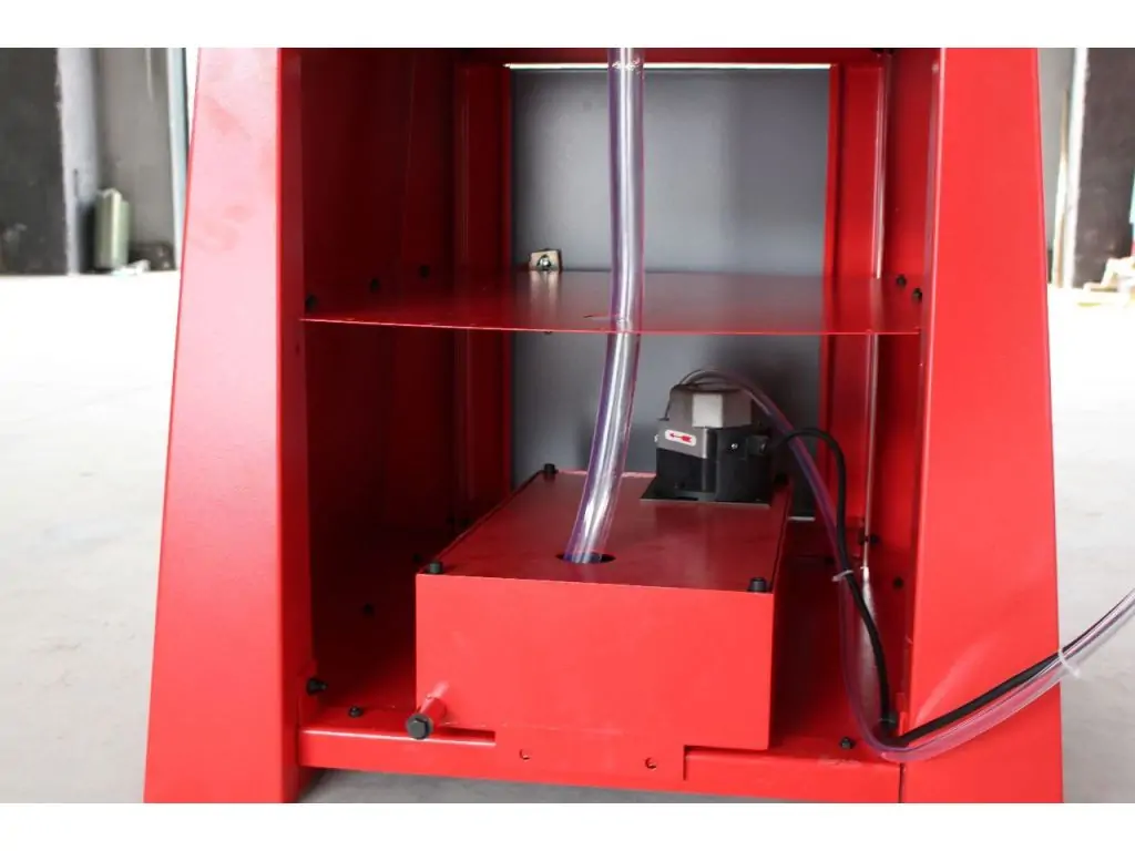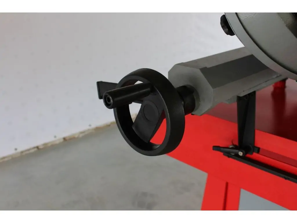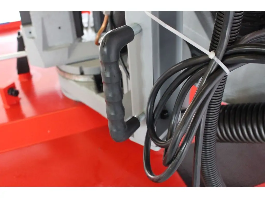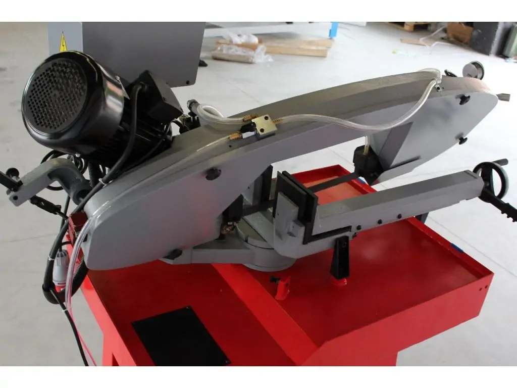 Опускання пильного вузла здійснюється автоматично або вручну. Швидкість опускання плавно регулюється гідравлічним циліндром. Для надійної фіксації заготовки використовуються швидкозатискні регульовані лещата. Система охолодження ЗОР запобігає перегріву і покращує якість різання. Станина доповнена відсіком для зберігання інструменту. Завдяки промисловому дизайну і якісним матеріалам виготовлення, ця стрічкова пила для різання металу надзвичайно ефективна і довговічна.