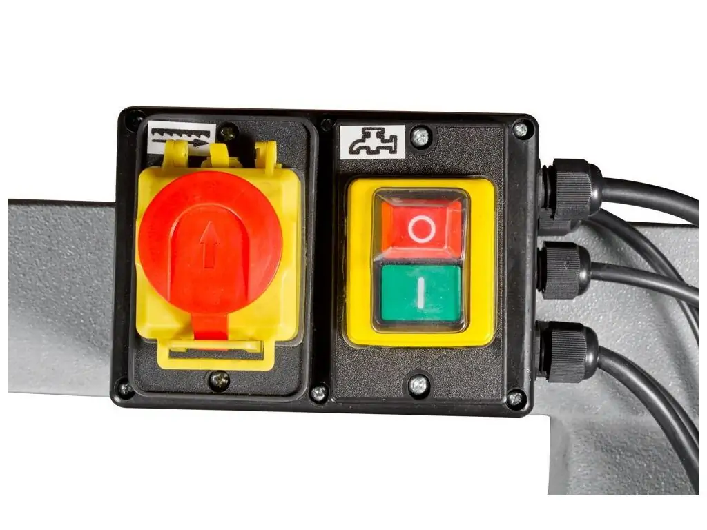 Безпека понад – усе! Запобіжні пристрої в стрічкових пилах для металу є важливою частиною системи безпеки та призначені для захисту оператора та самого обладнання від небезпек та непередбачених ситуацій. Система автоматичного вимикання після закінчення різу заготовки, виконується за допомогою кінцевого вимикача. Це вимоги згідно європейських норм безпеки для працюючого персоналу. Також присутні аварійні вимкнення при виявленні небезпечних умов, таких як перегрів, перевантаження чи інші аварійні ситуації.