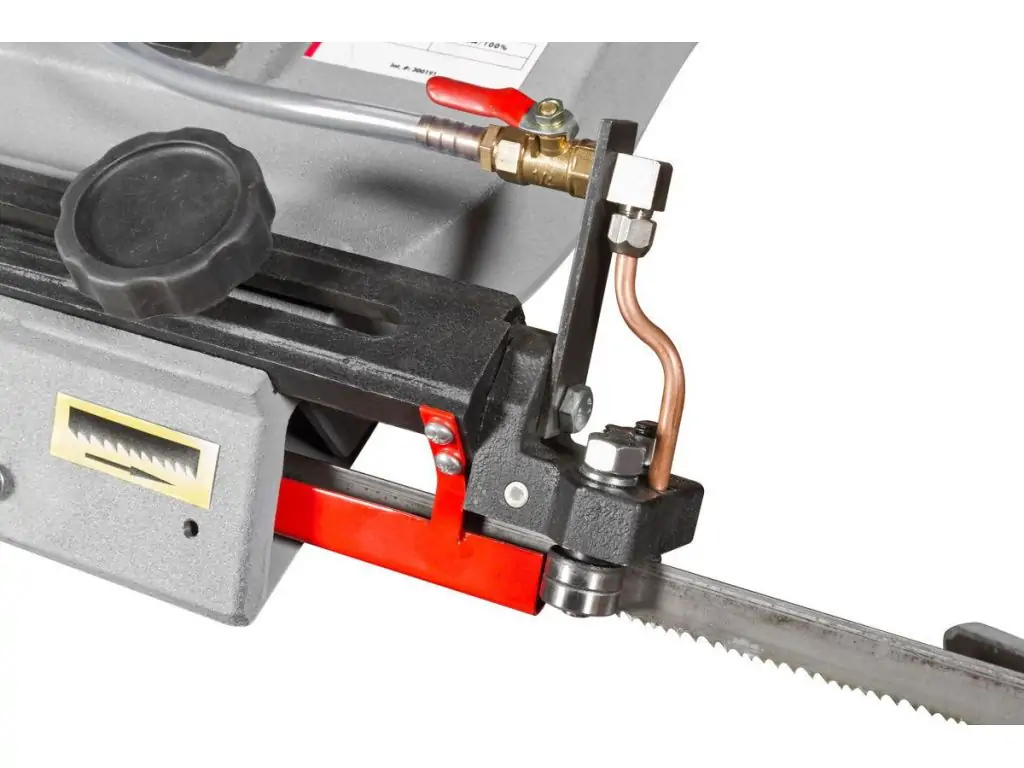 Даний верстат обладнаний ремінною передачею, регулювання швидкості відбувається за рахунок перекидання ременя на відповідний шків. Регулювання швидкості у стрічкових пилах по металу є важливою функцією, тому що вона має безпосередній вплив на якість та швидкість роботи з заготовкою. Регулювання швидкості дозволяє операторові адаптувати швидкість різання до конкретного матеріалу, що безпосередньо впливає на ефективність та якість обробки. Підбір відповідної швидкості допоможе уникнути перегріву полотна чи заготовки, що сприяє тривалішому терміну служби полотна та очікуваному результату від роботи, також регулювання допомагає уникнути зайвої вібрації.