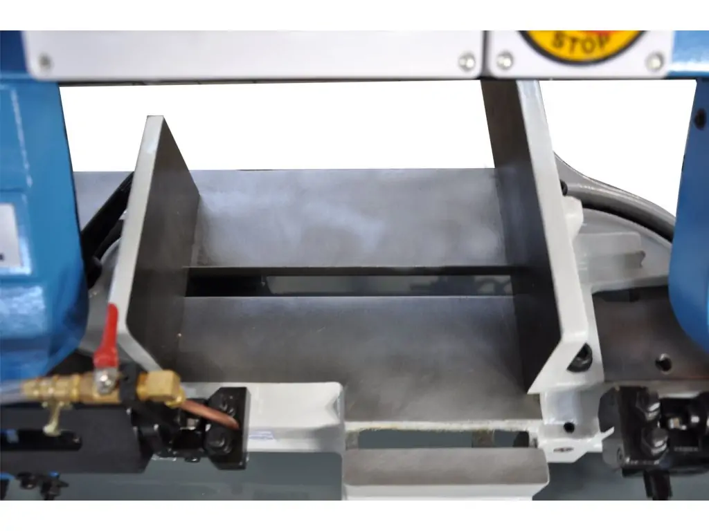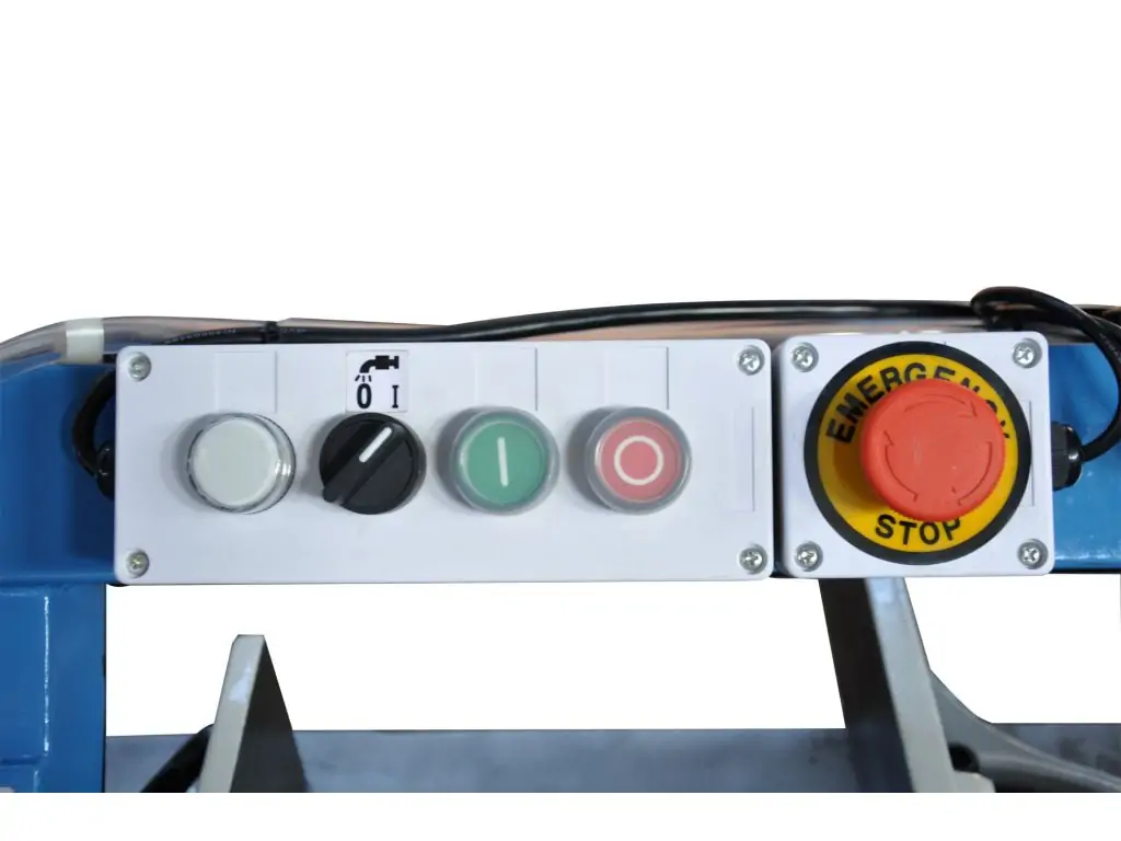 Безпека понад – усе! Запобіжні пристрої в стрічкових пилах для металу є важливою частиною системи безпеки та призначені для захисту оператора та самого обладнання від небезпек та непередбачених ситуацій. Система автоматичного вимикання після закінчення різу заготовки, виконується за допомогою кінцевого вимикача. Це вимоги згідно європейських норм безпеки для працюючого персоналу. Також присутні аварійні вимкнення при виявленні небезпечних умов, таких як перегрів, перевантаження чи інші аварійні ситуації.