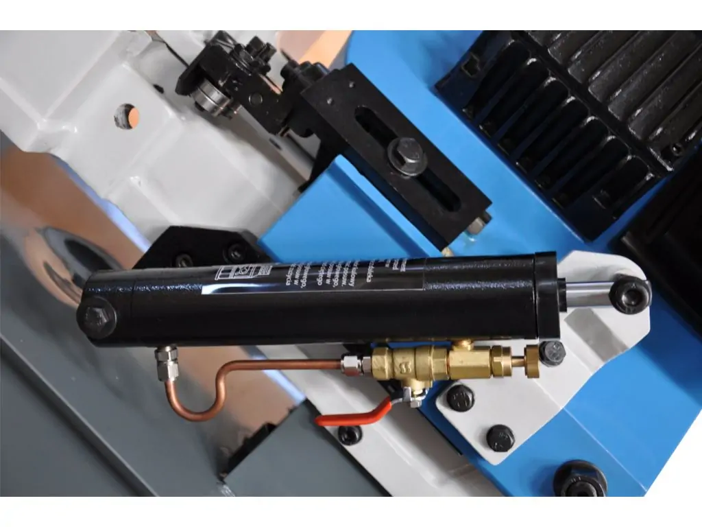 Гідроциліндр, який використовується для опускання голови стрічкової пили, забезпечує плавне та контрольоване опускання, що дозволяє точно контролювати процес різання. Також гідроциліндр дозволяє зафіксувати ріжучу голову на довільній зручній для конкретної заготовки висоті, щоб початок опускання голови відбувався безпосередньо над заготовкою, а не від крайнього верхнього положення