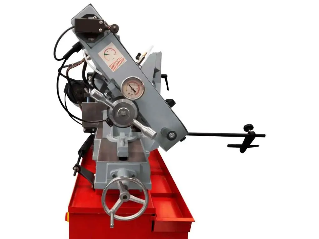 Здатність різати під кутами є незамінною функцією верстату, дана модель обладнана поворотними тисками. Завдяки простоті конструкції має доступнішу ціну порівняно з пилами з поворотною ріжучою головою. Використовується на виробництвах, де виконується різ як правило під прямим кутом і іноді під іншими кутами.