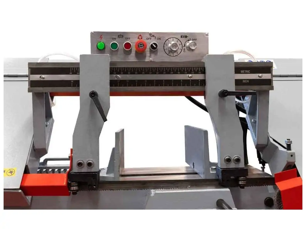 Безпека понад – усе! Запобіжні пристрої в стрічкових пилах для металу є важливою частиною системи безпеки та призначені для захисту оператора та самого обладнання від небезпек та непередбачених ситуацій. Система автоматичного вимикання після закінчення різу заготовки, виконується за допомогою кінцевого вимикача. Це вимоги згідно європейських норм безпеки для працюючого персоналу. Також присутні аварійні вимкнення при виявленні небезпечних умов, таких як перегрів, перевантаження чи інші аварійні ситуації.