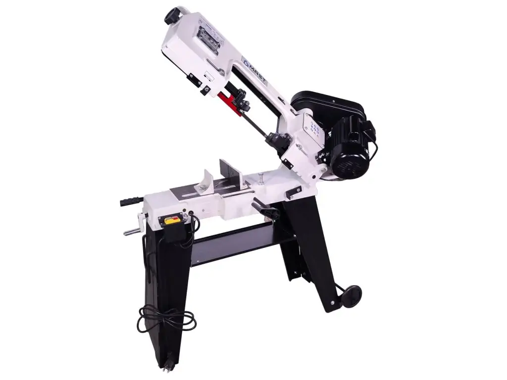 Стрічкова пила MAST Metalltechnik M-BS115-1 призначена для різання металевих труб з максимальним діаметром 110 мм і профілів розміром до 150х110 мм. Також може встановлюватися вертикально для різання листів. Оснащена двигуном потужністю 370 Вт, що працює від напруги 230 В. Обертовий рух здійснюється за допомогою ремінної передачі.