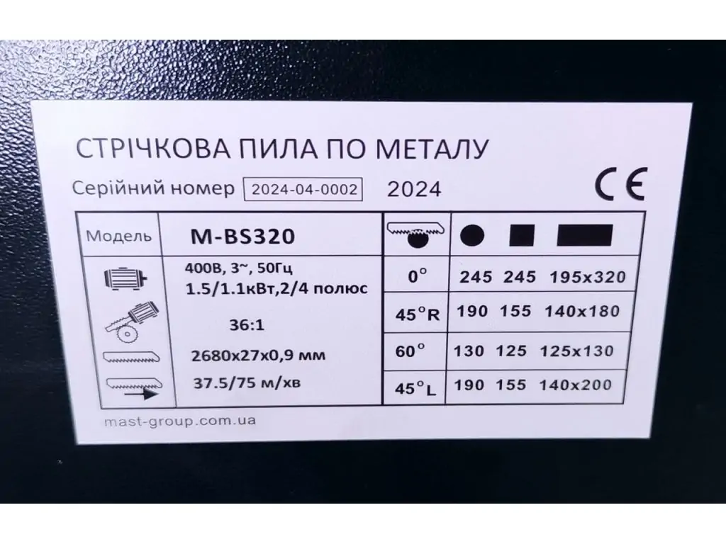 Особливості стрічкової пили по металу MAST Metalltechnik M-BS320 400V