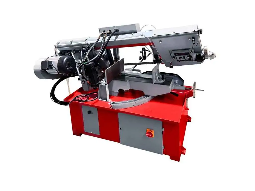Швидкість опускання пильної рами регулюється за допомогою гідроциліндра. Поворотна рама дозволяє регулювати кут різання від 0 до 45°. Система охолодження ЗОР запобігає перегріву стрічки та заготовки і покращує якість різу. Завдяки жорсткій станині ця стрічкова пила для різання металу залишається стабільною навіть при виконанні важких завдань.