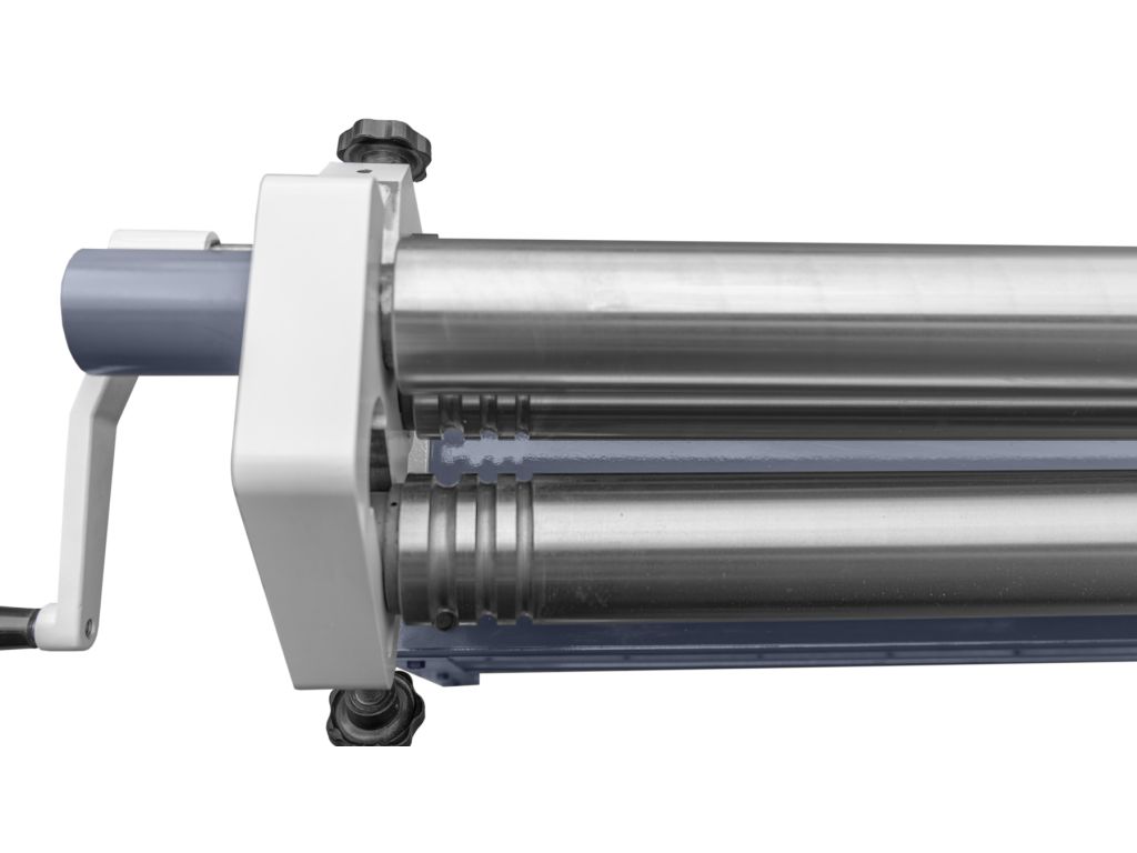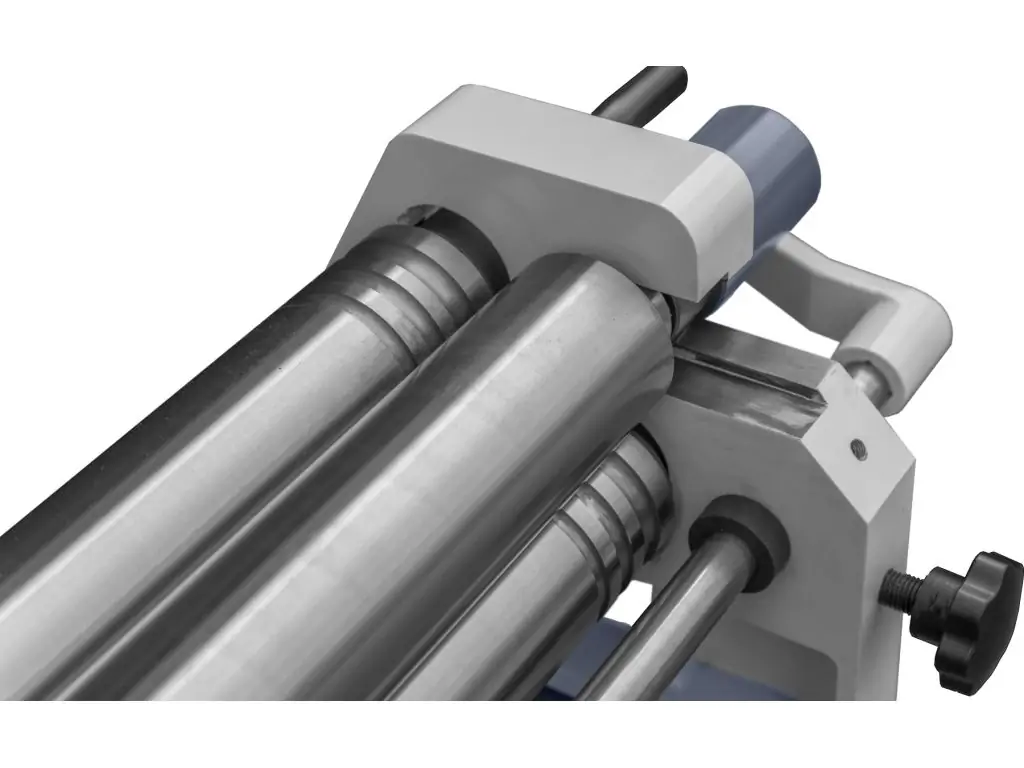 - Нахил верхнього валика: Верхній вал можна нахиляти, що полегшує видалення готових деталей і робить роботу з великими або складними заготовками більш зручною.