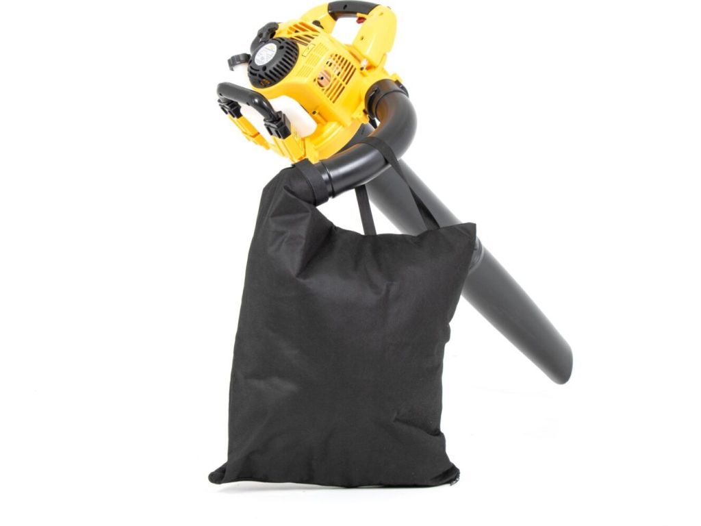 Обладнання працює на базі бензинового 2-тактного двигуна об’ємом 26 куб.см, потужність якого становить 700 Вт. Об’єм паливного бака 0,44 л дозволяє досить довго працювати без дозаправки. Завдяки ергономічному дизайну і вазі всього 4,6 кг цей садовий пилосос дуже зручний в користуванні.