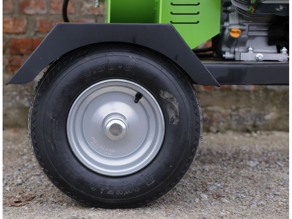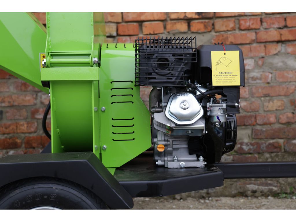 Оснащений бензиновим двигуном Loncin потужністю 13 к.с. і роторною системою подрібнення з 2 обертовими і 1 нерухомим лезом. Швидко і якісно переробляє значні об’єми деревини, може тривалий час працювати без перерви. Подрібнений матеріал викидається під тиском, завдяки чому робоча зона залишається чистою.