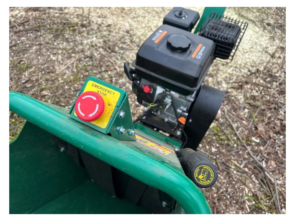 Щепоріз оснащений потужною барабанною системою з 2 обертовими ножами і 1 нерухомим лезом з міцної сталі, тому легко впорається з відходами діаметром до 100 мм (залежно від виду і вологості деревини). Розмір подрібнених фракцій становить 5-20 мм. Бензиновий двигун потужністю 6,5 к.с. економно споживає паливо і дає змогу досягати продуктивності 4 м³/год. Перероблений матеріал викидається з подрібнювача під тиском, зберігаючи чистоту робочої зони.