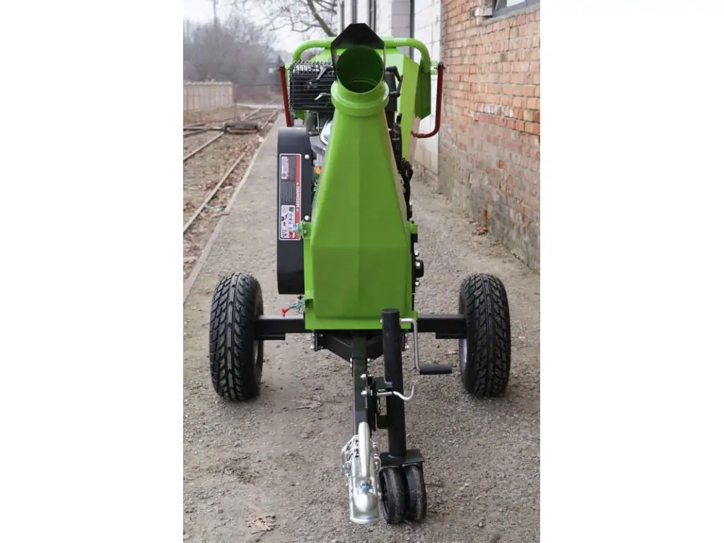 Бензиновий двигун потужністю 15 к.с дозволяє продуктивно працювати тривалий час, а роторна система з 2 ножами забезпечує якісне подрібнення матеріалу. Продуктивність переробки - 5 куб/год. Корпус виготовлений з якісної сталі, що гарантує надійність і тривалу службу обладнання. Завдяки широкому бункеру завантажувати матеріал зручно, а два великих колеса і фаркоп дозволяють легко переміщувати подрібнювач по різних поверхнях.