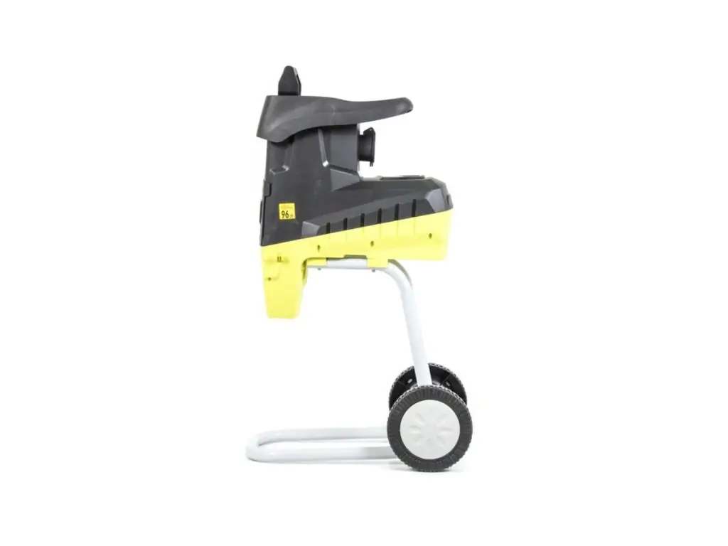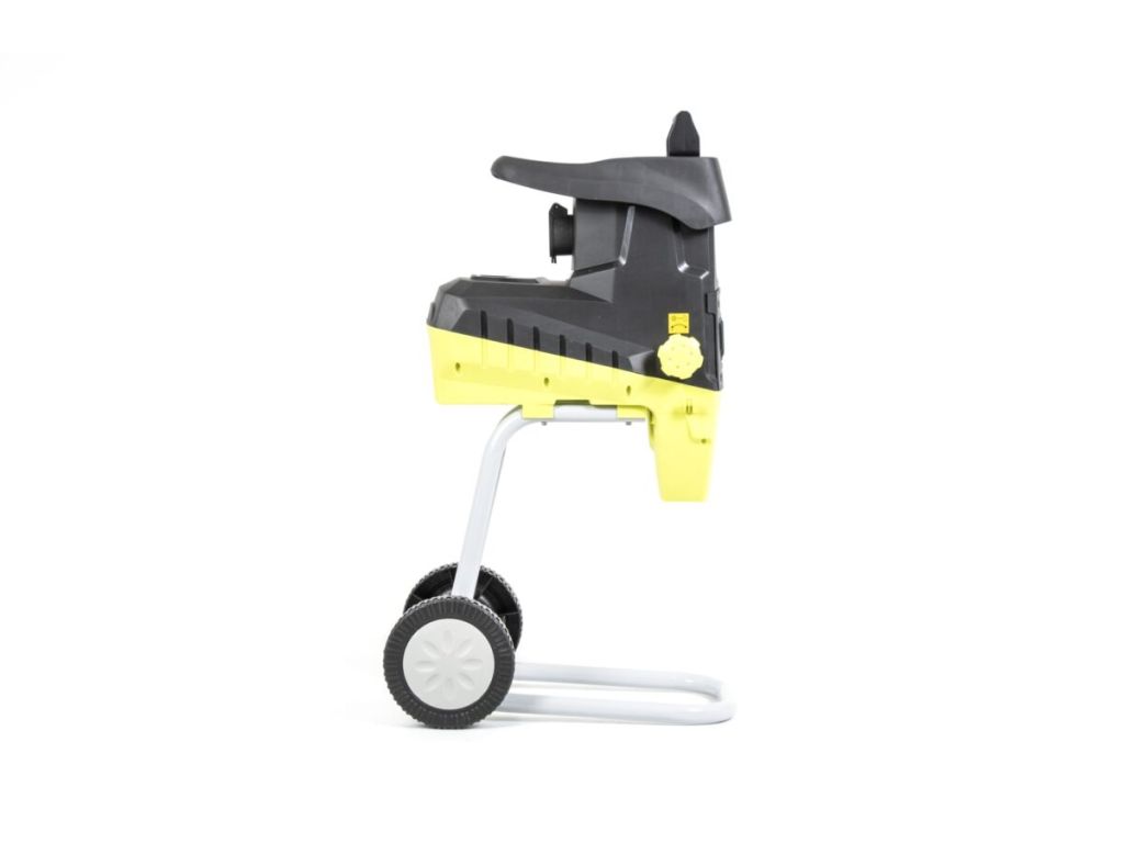 Оснащений фрезерним ріжучим механізмом, швидкість обертання фрези без навантаження становить 45 об/хв. Завантажувальний бункер має зручну, воронкоподібну форму. Подрібнений матеріал збирається у пластиковому контейнері. Об’єм контейнера 50 л дозволяє тривало працювати без зупинок для його спорожнення. Подрібнювач має захист від перегріву і перевантаження, що запобігає поломкам і швидкому зношенню механізмів. Велика опорна підставка забезпечує стійкість пристрою, а 2 колеса дозволяють легко переміщати цей електроподрібнювач гілок по ділянці.