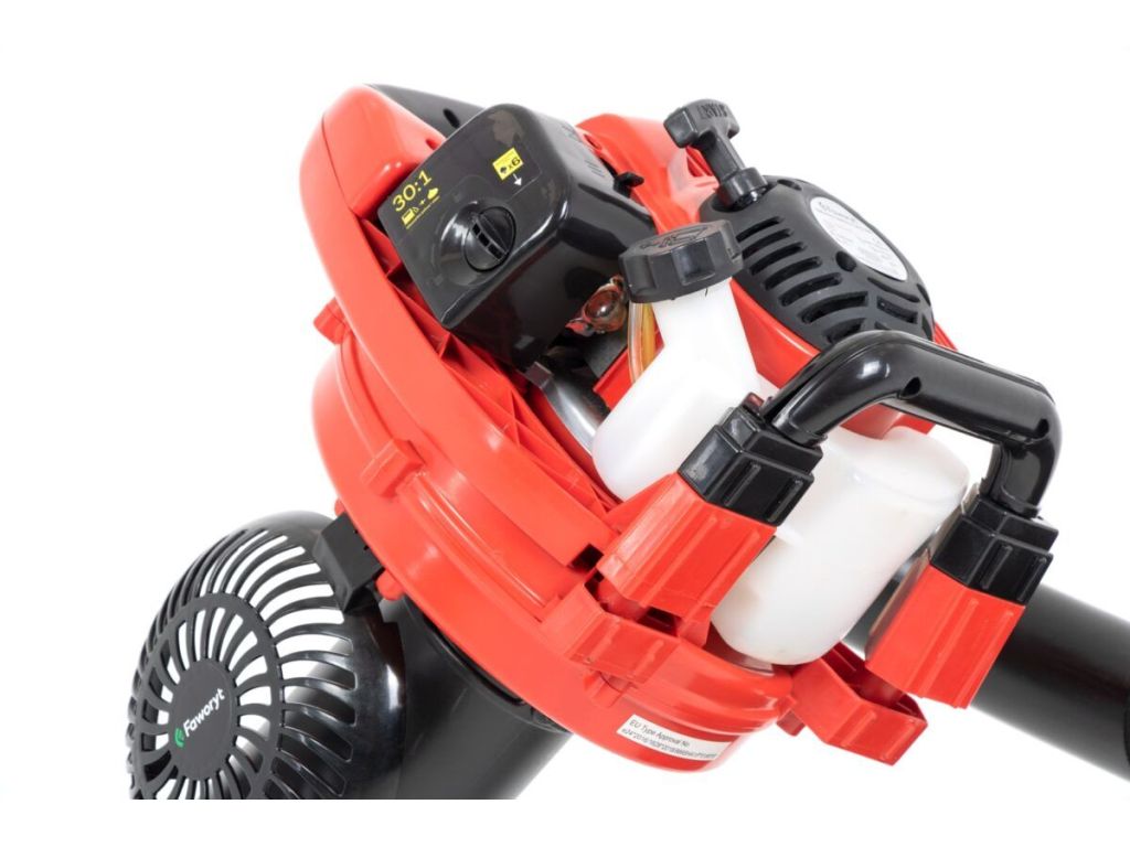 Пристрій працює на 2-х тактному двигуні потужністю 1 к. с. і об'ємом 26 см3. Ви можете очистити територію навколо свого будинку ще ефективніше завдяки функціям видування та всмоктування. Відходи, що надходять у пристрій, подрібнюються у співвідношенні 10:1, а потім потрапляють у місткий мішок на 40 л. Гострий ефективний ніж-шредер дозволяє повільно наповнювати мішок і не вимагає частого спорожнення, що значно прискорює роботу з прибирання.