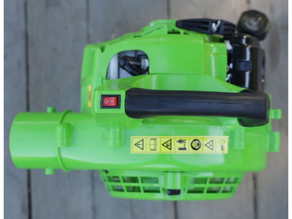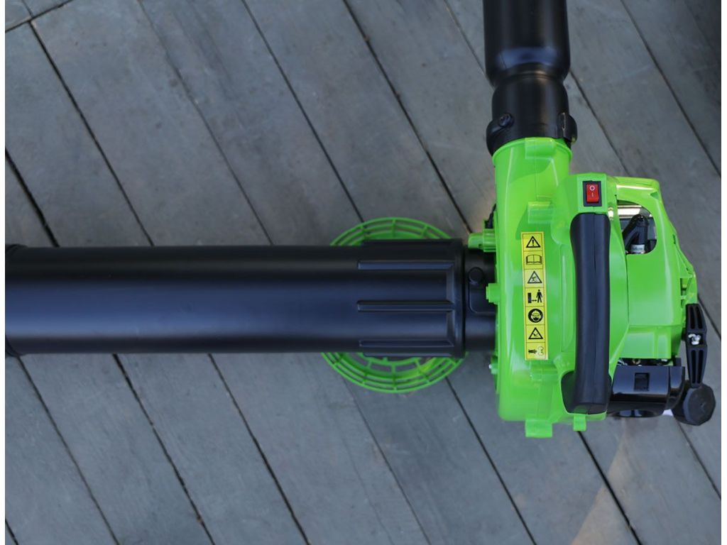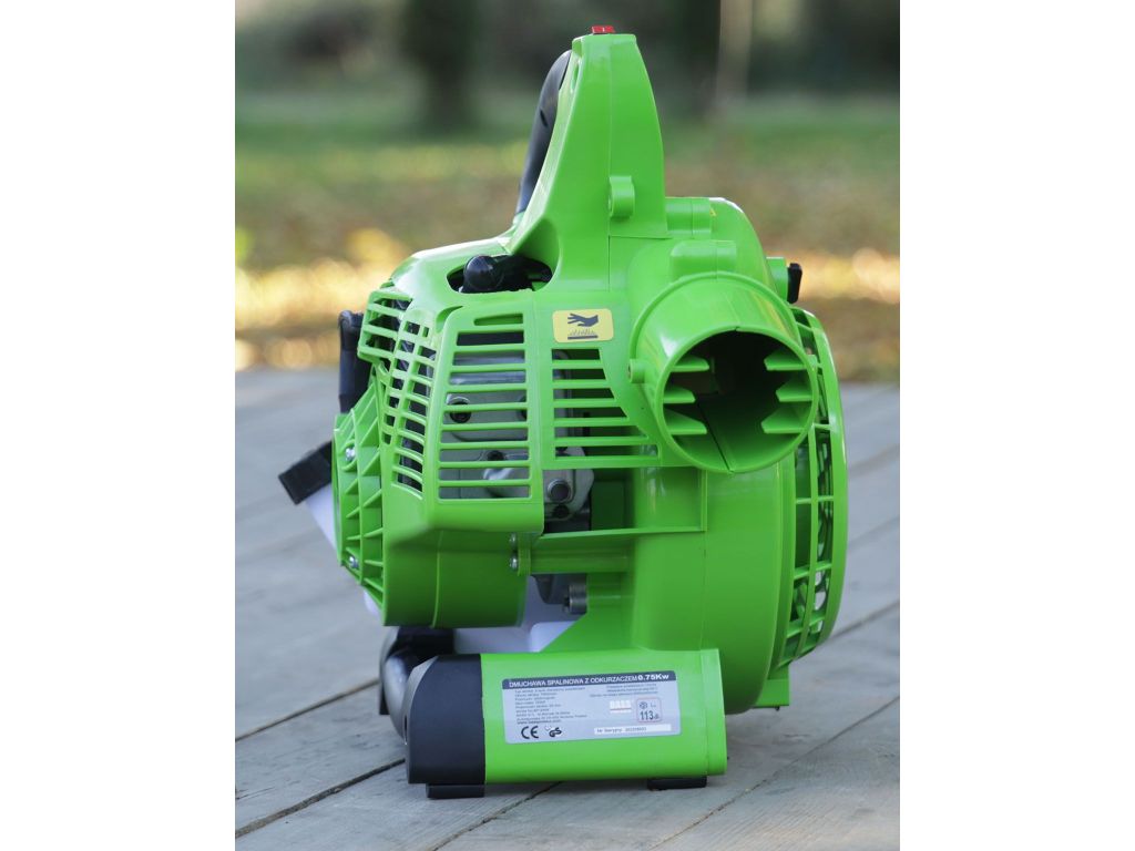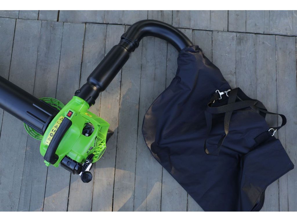 Пристрій оснащений 2-тактним бензиновим двигуном потужністю 750 Вт, який забезпечує стабільну та продуктивну роботу і необмежений діпазон пересування завдяки відсутності шнурів. Додатковою перевагою є функція подрібнення зібраних відходів, яка допомагає зменшити їх об’єм і дозволяє в подальшому використати їх у якості мульчі чи компосту. Цей садовий пилосос повітродув має компактний розмір і вагу всього 5,5 кг, тому робота з ним не потребує значних фізичних зусиль.
