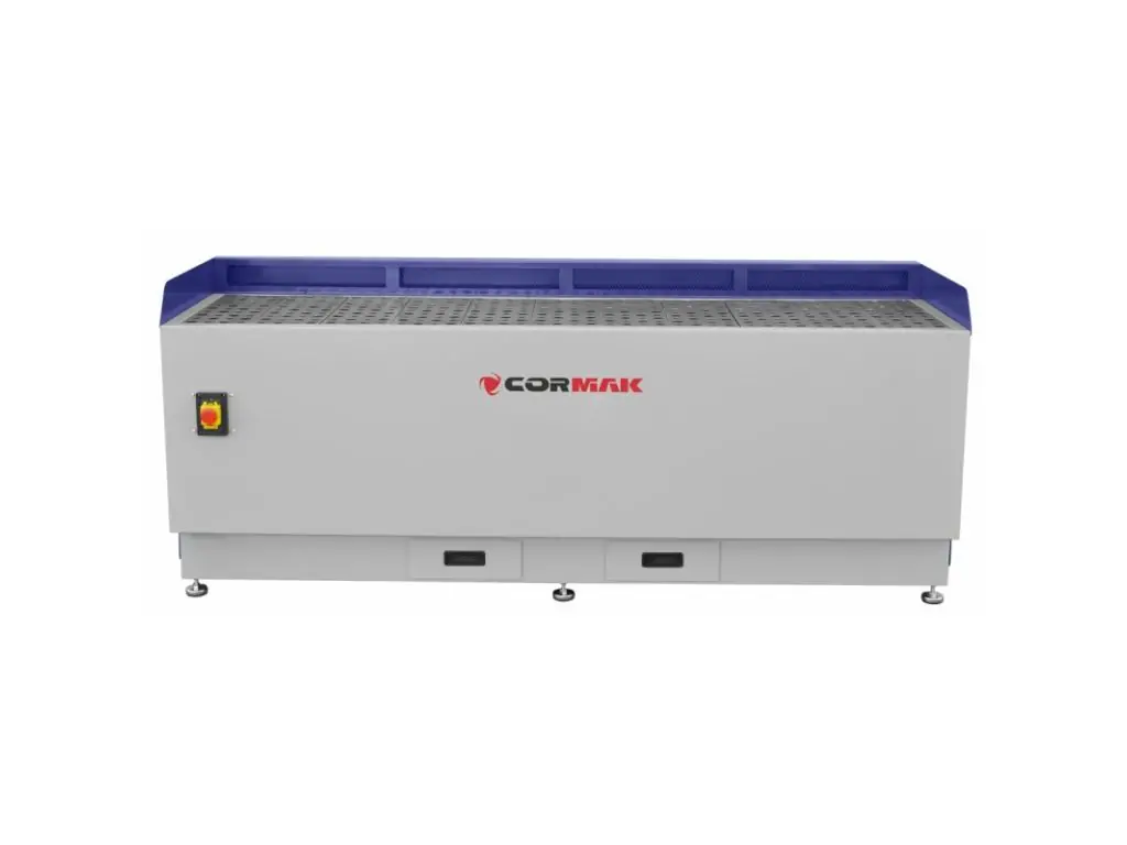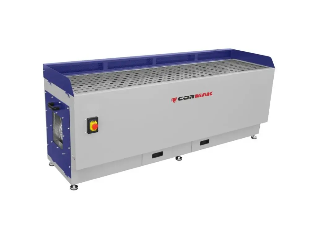 Професійний шліфувально-витяжний стіл CORMAK DT2000M - це потужне витяжне обладнання для шліфування деревини і металу, яке ефективно видаляє пил і стружку, що виникають при обробці матеріалів. Оснащений подвійною системою фільтрації з продуктивністю всмоктування 2х4000 м³/год. 4 картриджні фільтри розміром 395x495x24 мм забезпечують ефективність очищення понад 99,9%, а захоплення спочатку великих, а потім дрібних абразивних частинок зменшує навантаження на фільтри.