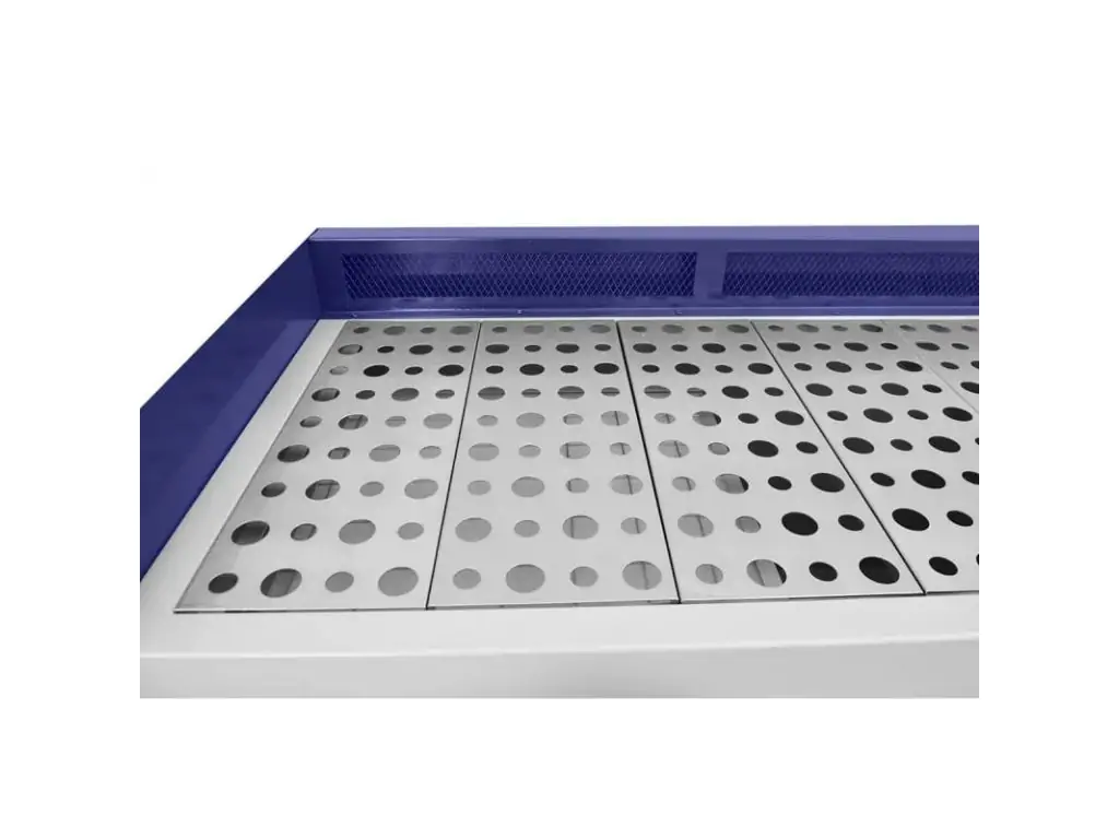 Сегментована поверхня дозволяє швидко знімати окремі частини столу для очищення або доступу до фільтрів. Це спрощує технічне обслуговування.