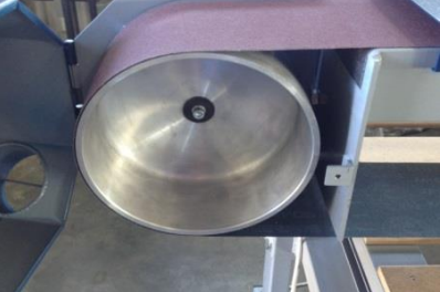 Для ручного шліфування відкривається захисний кожух шліфувального вузла, і оператор вручну подає заготовку до відкритої ділянки рухомої стрічки, притискаючи її до опорної поверхні. Це дає можливість обробляти деталі, які не можна зафіксувати на робочому столі, а також шліфувати криволінійні кромки.