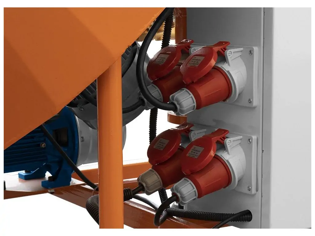 Система регулювання потоку води з ротаметром дозволяє точно дозувати воду для правильних пропорцій розчину. Об’єм резервуара для сумішей становить 100 л, що забезпечує тривалу роботу без вимушених зупинок. Лопаті спеціальної форми ефективно розбивають грудки, що гарантує рівномірність розчину. Завдяки простій панелі керування та модульній конструкції з поворотними колесами і гальмами, ця будівельна штукатурна машина зручна в експлуатації та обслуговуванні.