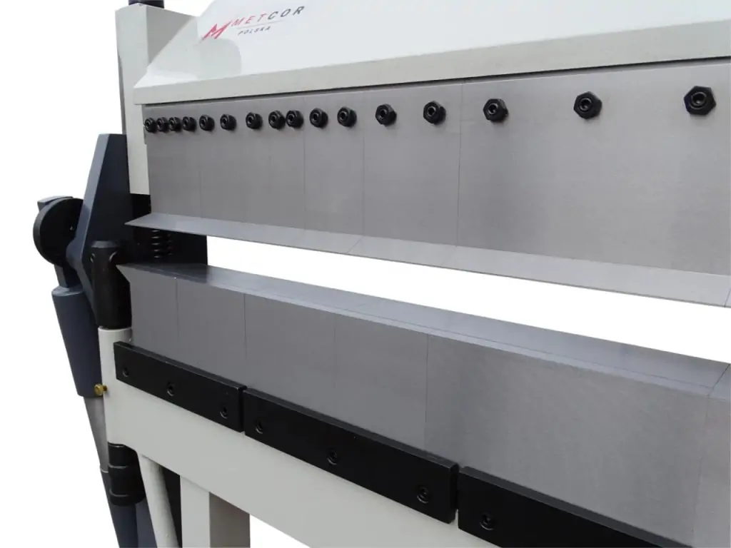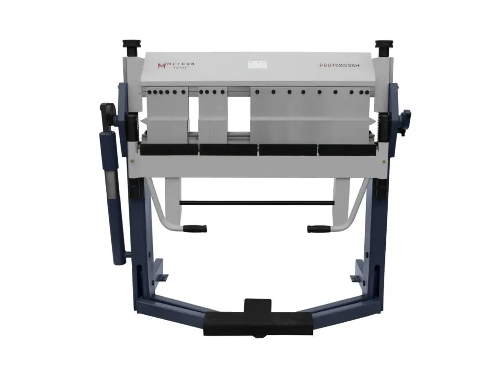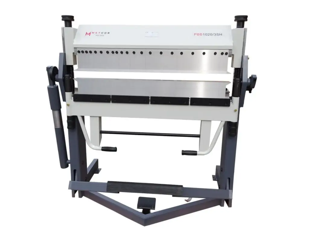 Листозгинальний верстат METCOR PBB1020/3SH призначений для згинання листового металу товщиною до 2 мм і шириною до 1020 мм при виготовленні фасадних, корпусних, вентиляційних і покрівельних елементів, коробів та інших металоконструкцій. Особливістю моделі є три сегментовані балки, що дозволяє робити складні зворотні згини та працювати з деталями, які вже мають загнуті краї. Кут згину - до 150°. Такі конструктивні особливості забезпечують більше можливостей згину, ніж у стандартних конкурентних листозгинальних верстатів.