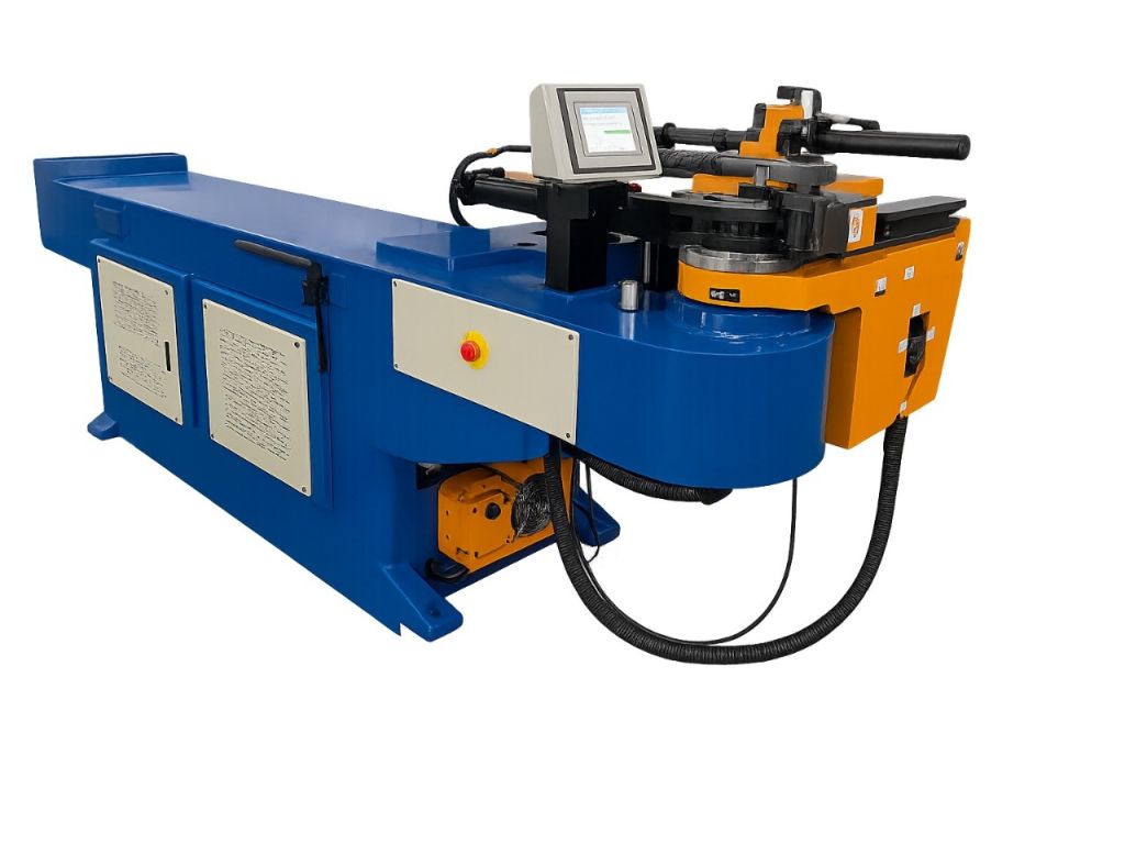 На верстаті встановлений електронний контролер NC, який синхронізований з гідравлічною системою. Контролер автоматично налаштовує зусилля згину і регулює швидкість згинання, що забезпечує відсутність ривків та зниження ризику вм’ятин або зміни овальності труби. Може зберігати кілька програм і послідовностей згинання, що значно скорочує час налаштувань. В комплект поставки входить набір матриць, дорнів та клинів, завдяки чому можна швидко змінювати конфігурації для різних діаметрів і радіусів. Висока точність роботи, а також повторюваність і стабільність обробки роблять цей трубогиб із електронним контролером ефективним рішенням для серійного виробництва і виготовлення складних деталей.