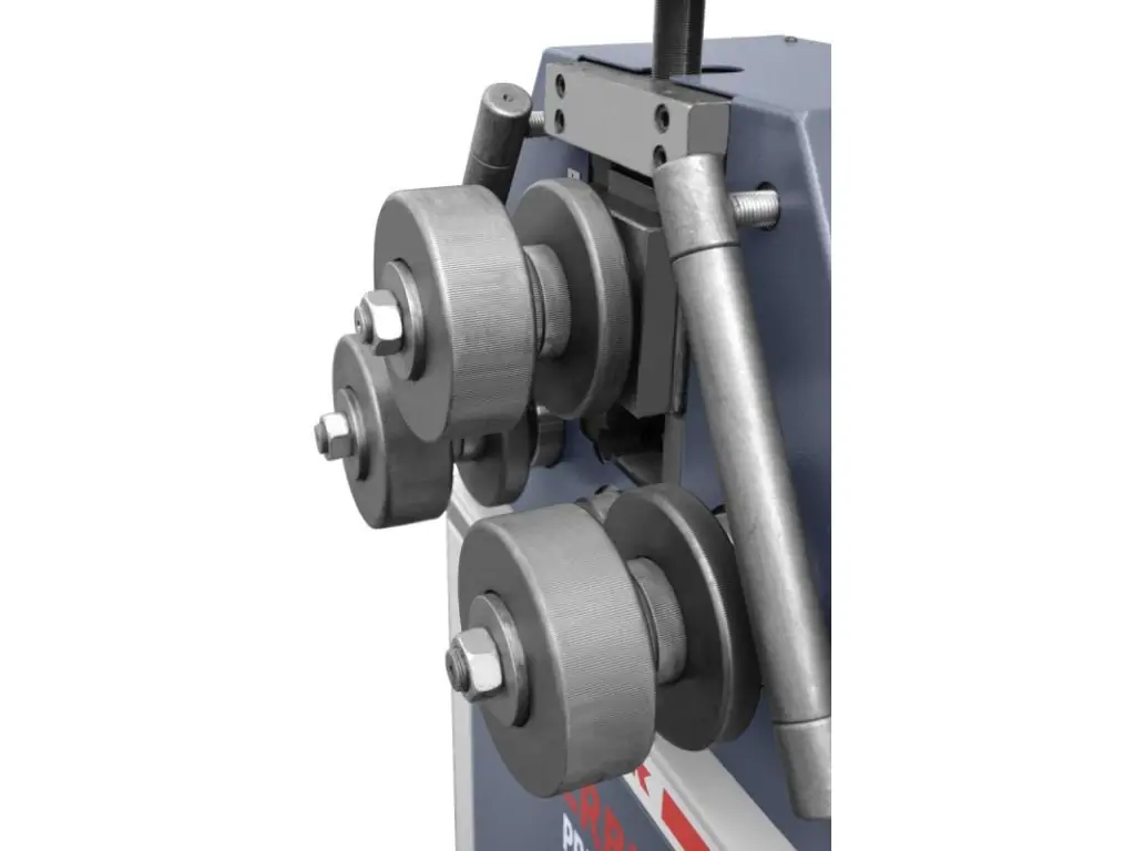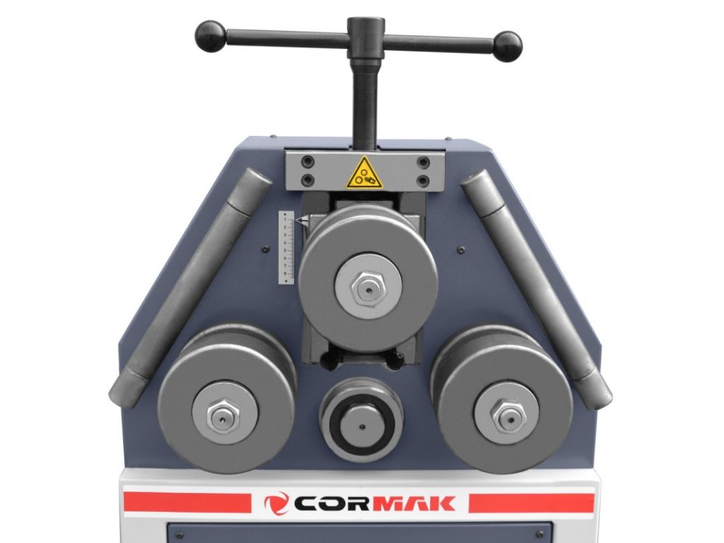 Трьохсотлітньої верстат для гнуття профілів в окружності, пристосований для горизонтальної і вертикальної роботи. Бічні правильні ролики мають плавне регулювання вильоту. Складові ролики з високоміцної сталі.