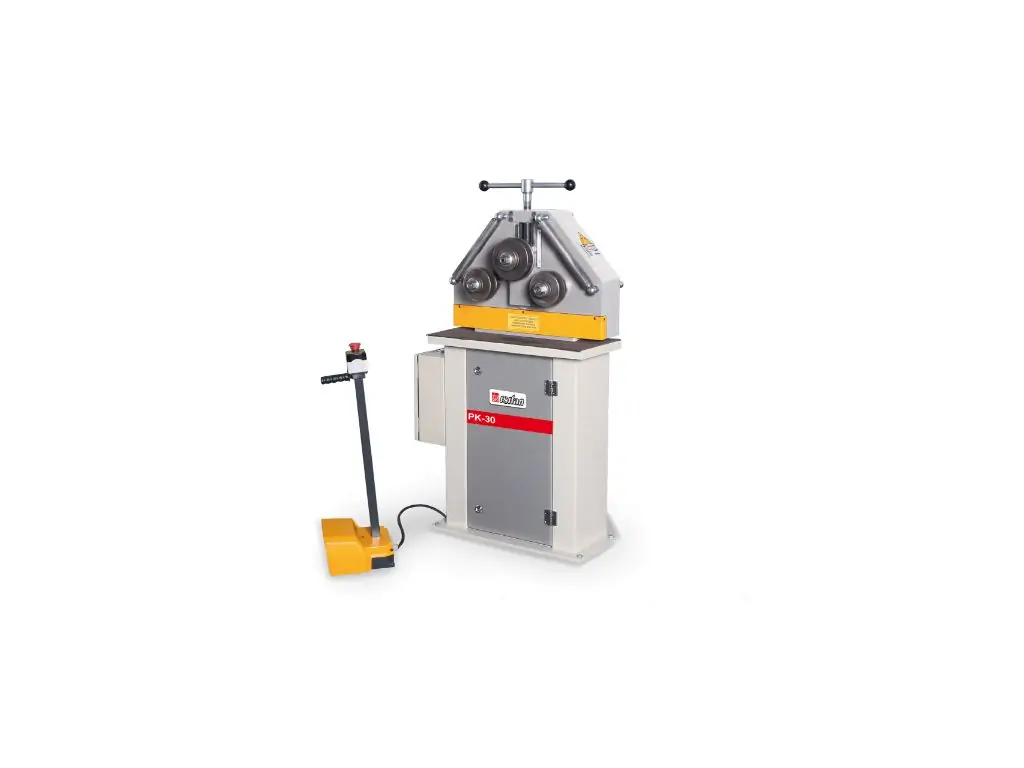 Гибочний верстат PK-30 – це електромеханічне обладнання з двома валами приводу, що дозволяє за один прохід згинати профіль різного виду та металеву трубу на різний радіус.