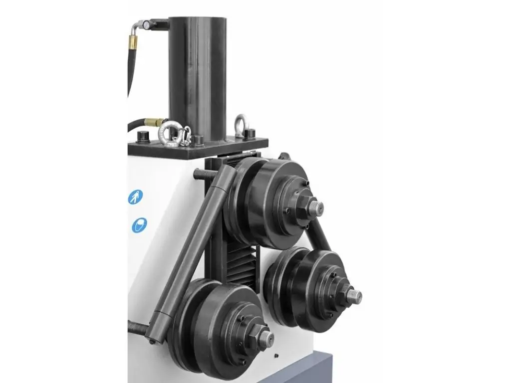 Верстат додатково обладнаний гідравлічним притиском верхнього валка. Ідеальне рішення для гнуття арок, кіл, спіралей і т. д.