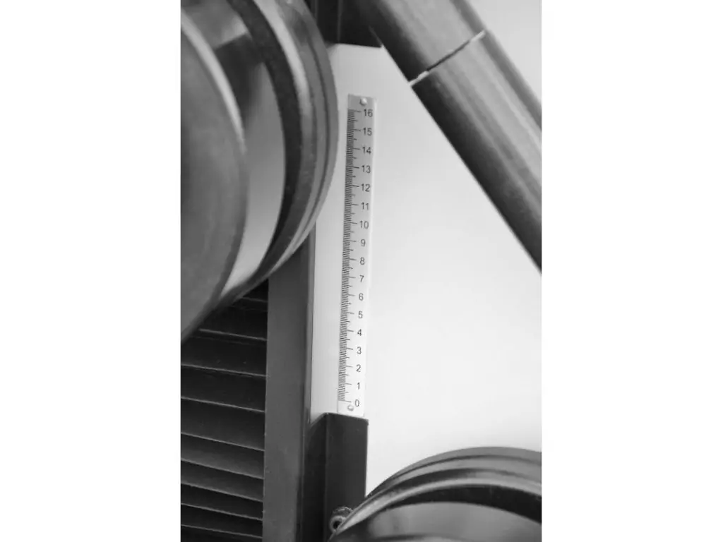 - Обидві осі листозгинального верстата приводяться в рух потужним гідродвигуном, а верхнє колесо піднімається віссю гідроциліндра.