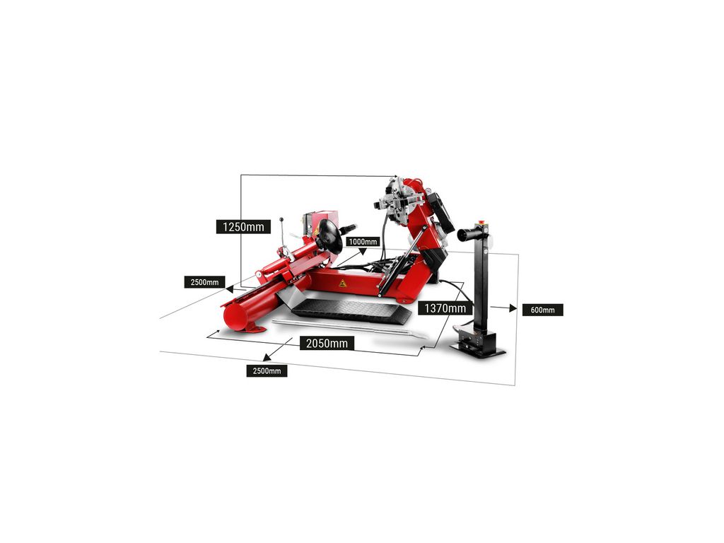 Потужність роторного двигуна становить 1,8 кВт, потужність двигуна гідравлічного насоса - 1,5 кВт. Верстат працює від трифазної мережі. При високій потужності і широких можливостях обладнання просте в експлуатації і тихе в роботі (рівень шуму - менше 70 дБ), тому робота з ним зручна і комфортна. Цей автоматичний шиномонтажний верстат для вантажівок відмінно підійде для великих автосервісів, де потрібна висока швидкість і продуктивність роботи.