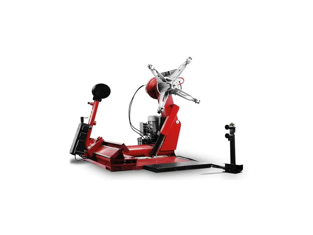 Верстат має повністю автоматичне управління, що дозволяє швидко обслуговувати великий потік машин і зменшує фізичне навантаження на оператора. Потужність роторного двигуна - 2,4 кВт, потужність двигуна гідронасоса - 3,3 кВт. Працює від трифазної мережі. Низький рівень шуму (менше 70 дБ), надійність і витривалість конструкції, продуктивність і зручність експлуатації роблять цей верстат для вантажного шиномонтажу відмінним вибором для великих автосервісів.