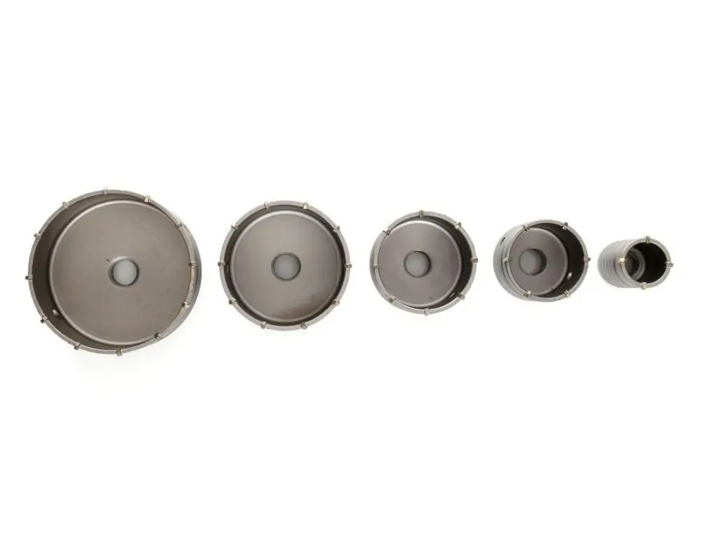 Свердла мають зубчастий обід із твердого сплаву HM. Направляюче свердло також має твердосплавну пластину. Ця коронка в основному використовується для вирізання отворів для монтажних коробок, розеток, кабельних джгутів, труб і багато чого іншого. У всіх типах будівельних матеріалів, тобто бетоні, цеглі, штукатурці, пустотілих блоках, гіпсокартоні, гіпсоцементних плитах і багатьох інших.