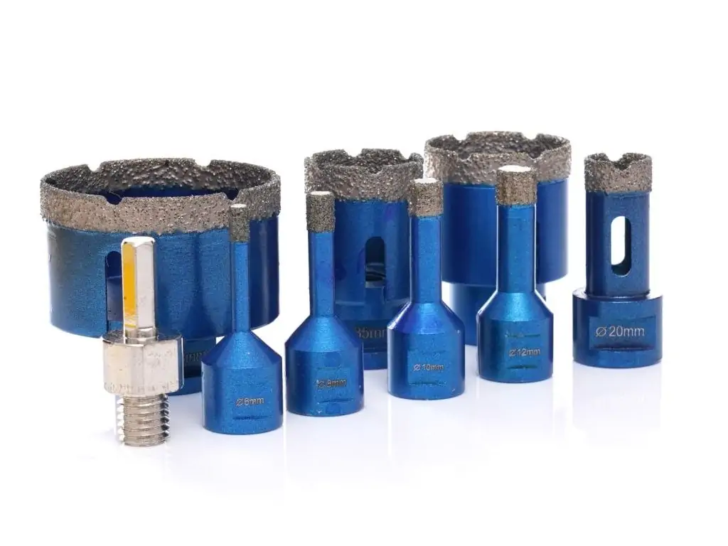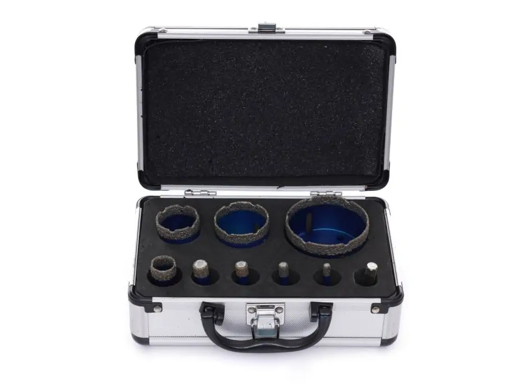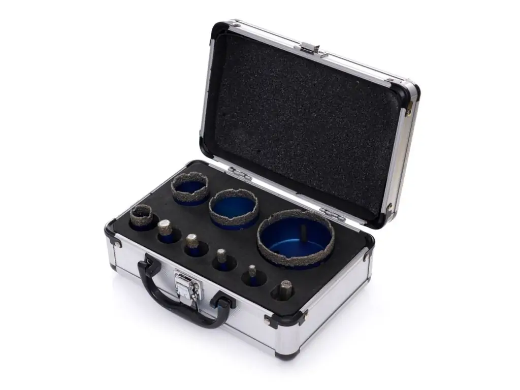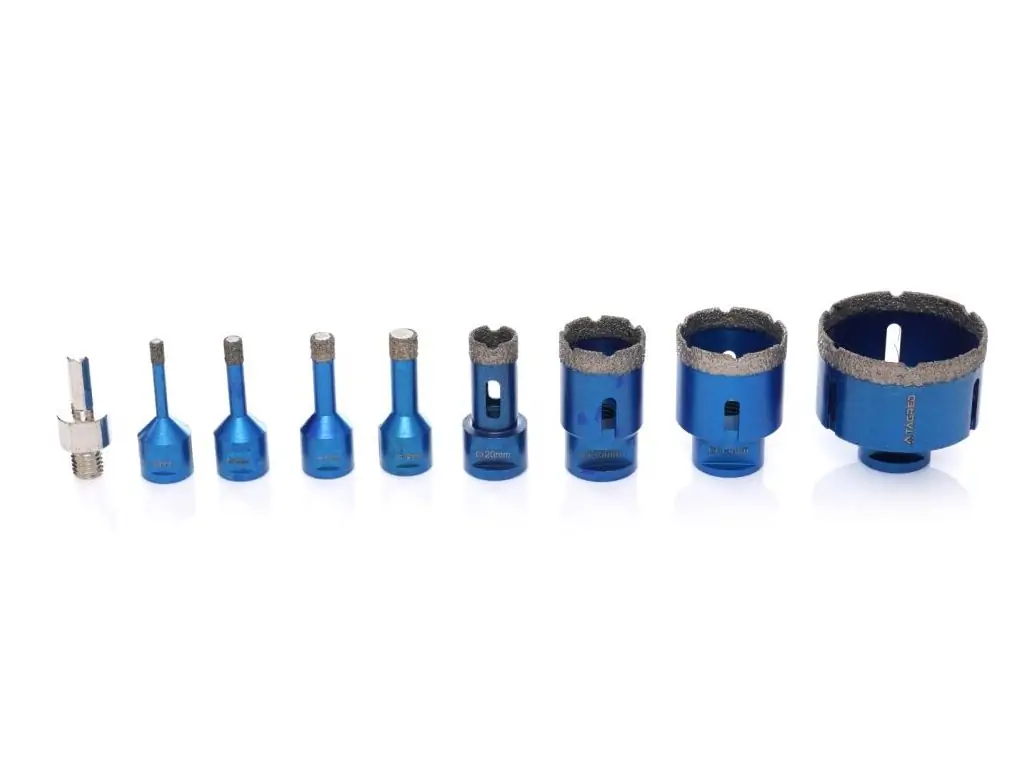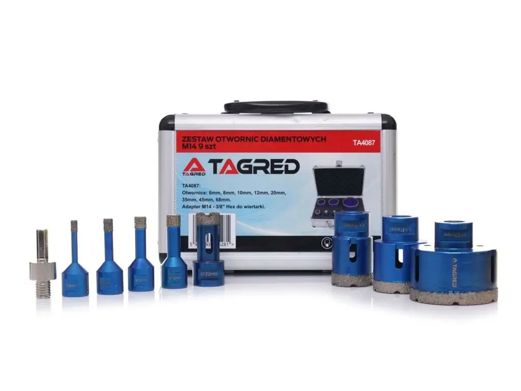 Кільцеві алмазні коронки TAGRED TA4087 - самоохолоджувальні та ефективні алмазні свердла для дрилів та кутових шліфувальних машин дозволяють виконувати чисте свердління всіх типів плитки без використання водяного охолодження. Професійні алмазні коронки були встановлені з використанням технології вакуумного паяння. Їх цінують за швидкість свердління дуже жорстких матеріалів. Бічні отвори для пилки прискорюють свердління та видалення матеріалу.