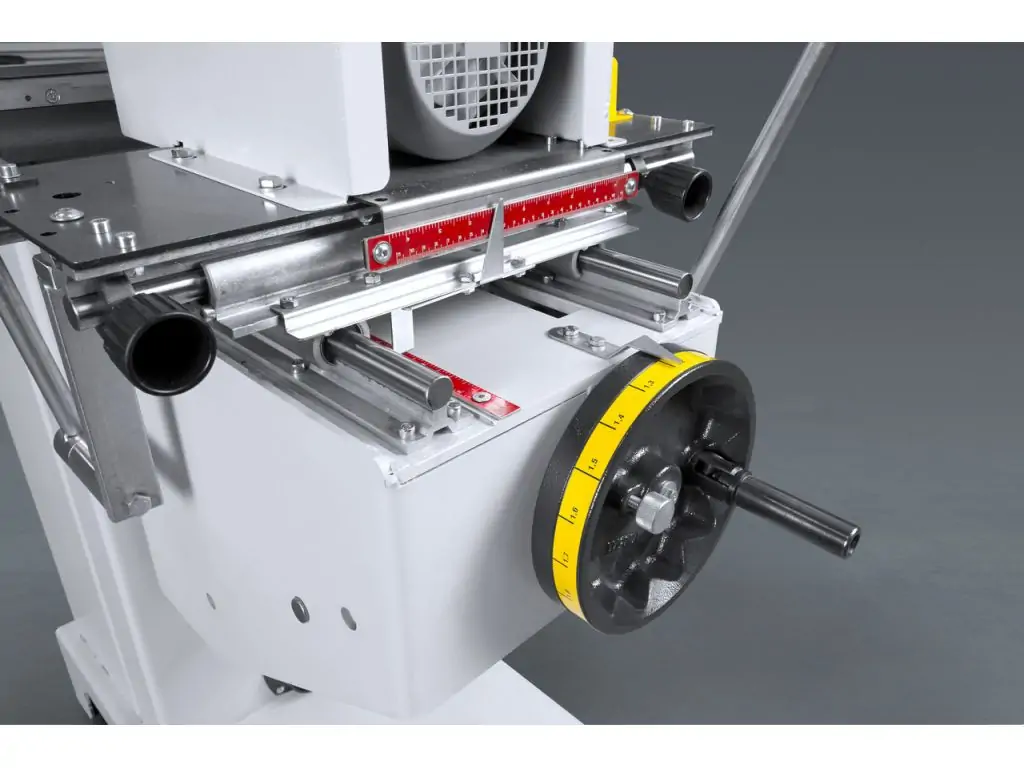 Свердлильно-пазувальний верстат Robland LВМпризначений для вибірки пазів і свердлення отворів у дерев`яних деталях при виробництві дверей і вікон. Верстат має міцну сталеву конструкцію, свердлильний супорт і стіл виготовлені з чавуну, стіл з ексцентриковим притиском деталей і дві рукоятки для переміщення свердлильного вузла вліво/вправо і вперед/назад. На верстаті є упори з лінійками для виставлення розміру і глибини паза. Також верстат має маховик для переміщення свердлильного вузла вгору і вниз з точністю 0,1 мм.