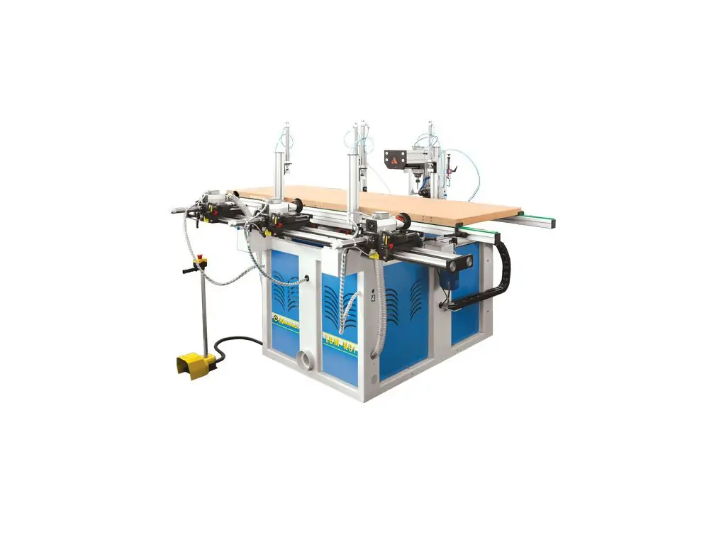 Автоматична машина з NC управління для вироблення пазів для замків та петель двері та рами із різних розмірів. Машина характеризується за короткий цикл роботи, управління по 3 осей, високочестотные двигунів, привід з сервомотори та пневматичну затяжения заготовки.