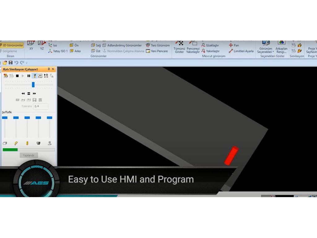 Точний контроль переміщення забезпечується в усіх осях завдяки чутливій інтерполяції. Операційна система машини може працювати з кодами G. Блок ручного управління дозволяє використовувати машину вручну.