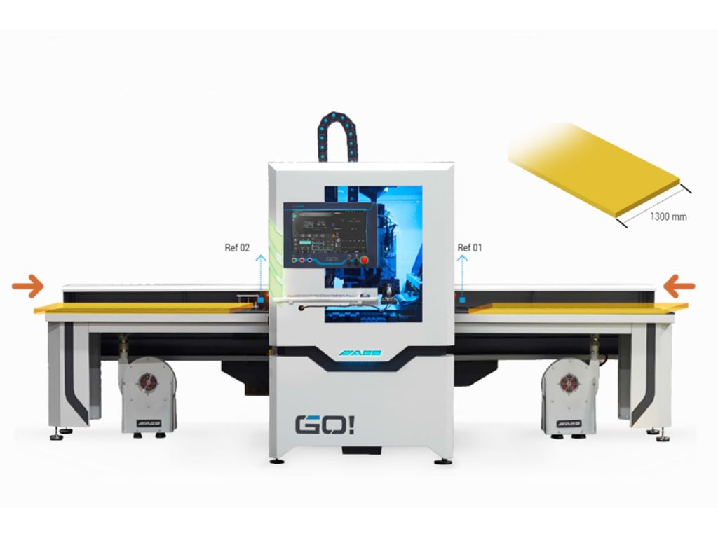 GO! - свердлильний верстат з числовим програмним управлінням було розроблено AES для деревообробної промисловості. Модель призначена для серійних і ефективних бурових робіт. Двигун шпинделя можна додати в якості опції і зробити операції фрезерування простими і ефективними. Гнучка система може адаптуватися до концепції бурової лінії.