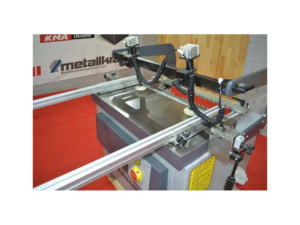 - Довгі поворотні лінійки (ліва і права) з 4 упорами і міліметровим регулюванням