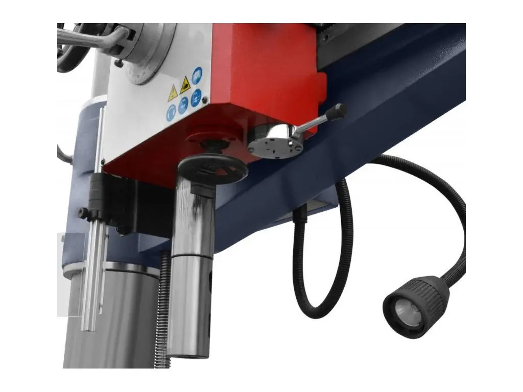 Двигун потужністю 2,2 кВт забезпечує продуктивну роботу з різними типами матеріалів, а 6 швидкостей обертання шпинделя у діапазоні 75-1200 об/хв дають змогу підібрати оптимальні параметри обробки. Автоматична подача шпинделя на 3 швидкостях підвищує продуктивність і точність свердління. За рахунок великої ваги і високої вібростійкості цей радіально-свердлильний верстат зберігає стабільність навіть при інтенсивних навантаженнях.