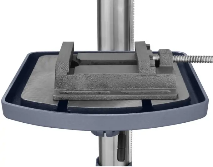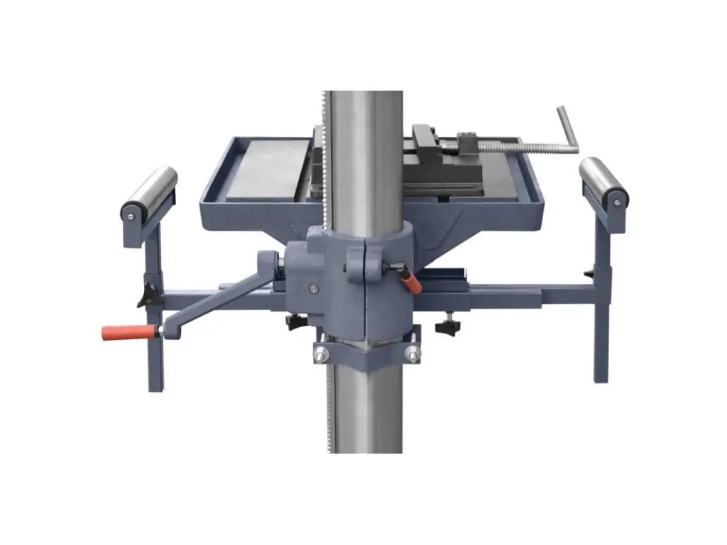 Робочий стіл виготовлено з чавуну, що є відповідним до класу верстата. Регулювання відбувається не тільки по вертикалі, а можливий нахил столу до 45° в обидві сторони, що збільшує можливості верстату та покращує зручність обробки деталі.