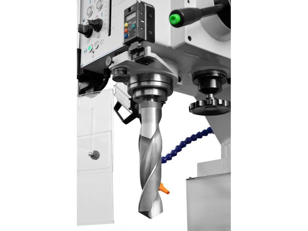 Верстат обладнаний системами безпеки відповідно до європейських норм. Кнопка аварійного вимкнення з самоблокуванням, для зупинки верстату при небезпечних ситуаціях. Відкидна кришка шпинделю яка захищає оператора, при піднятій кришці верстат не запуститься. На робочому столі є Т-подібні пази що допомагають зафіксувати деталь або дозволяють встановити додаткові фіксуючі елементи, такі як лещата.