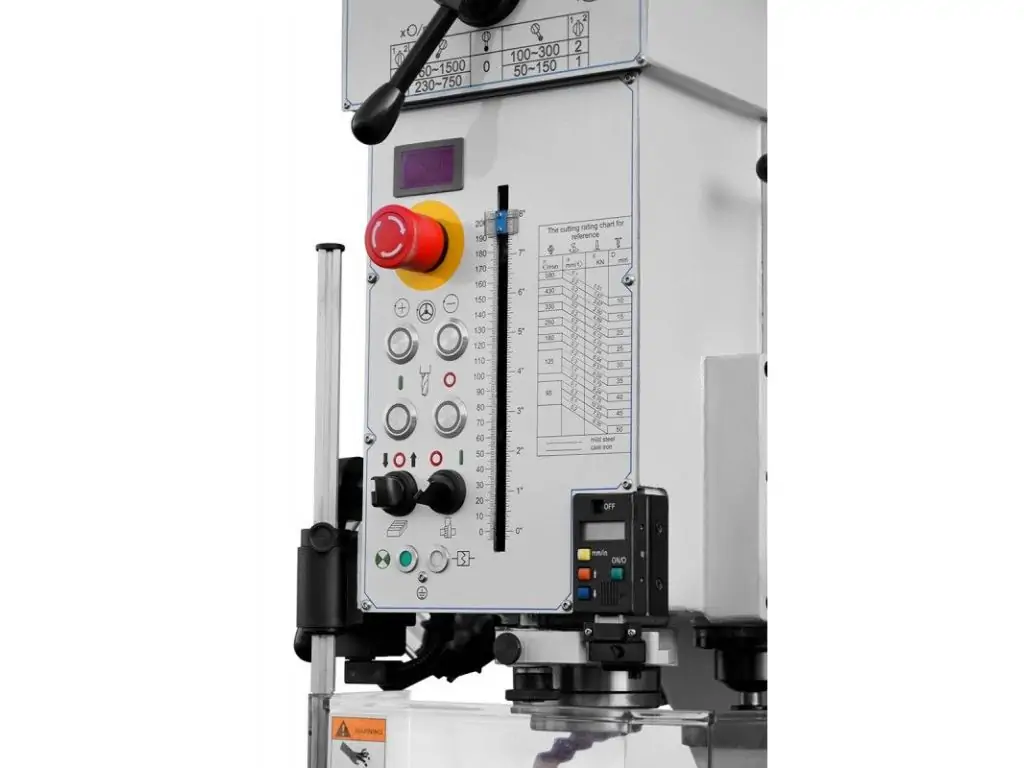 Регулювання швидкості є важливою функцією у свердлильному верстатові, адже під кожен матеріал та діаметр свердління потрібно підбирати відповідну швидкість, чим твердіший матеріал тим меншу швидкість і чим м’якший тим більшу швидкість можна встановлювати. Дана модель обладнана редукторною передачею та частотним перетворювачем, що дозволяє плавно регулювати швидкість. Правильно обрана швидкість запобігає передчасному затупленню свердла, його перегріву чи навіть повного руйнування. Не правильно підібрана швидкість теж має негативний вплив на матеріал, може відбутися перегрів який може призвести до послаблення матеріалу чи навіть до загорання чи плавлення. Регулювання швидкості дозволяє з максимальною ефективністю реалізувати потенціал потужності двигуна.