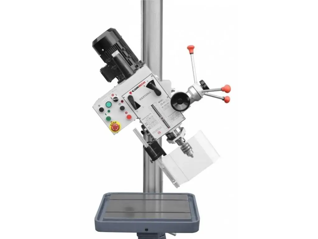 Верстат обладнаний системами безпеки відповідно до європейських норм. Кнопка аварійного вимкнення з самоблокуванням, для зупинки верстату при небезпечних ситуаціях. Відкидна кришка шпинделю яка захищає оператора, при піднятій кришці верстат не запуститься. На робочому столі є Т-подібні пази що допомагають зафіксувати деталь або дозволяють встановити додаткові фіксуючі елементи, такі як лещата.